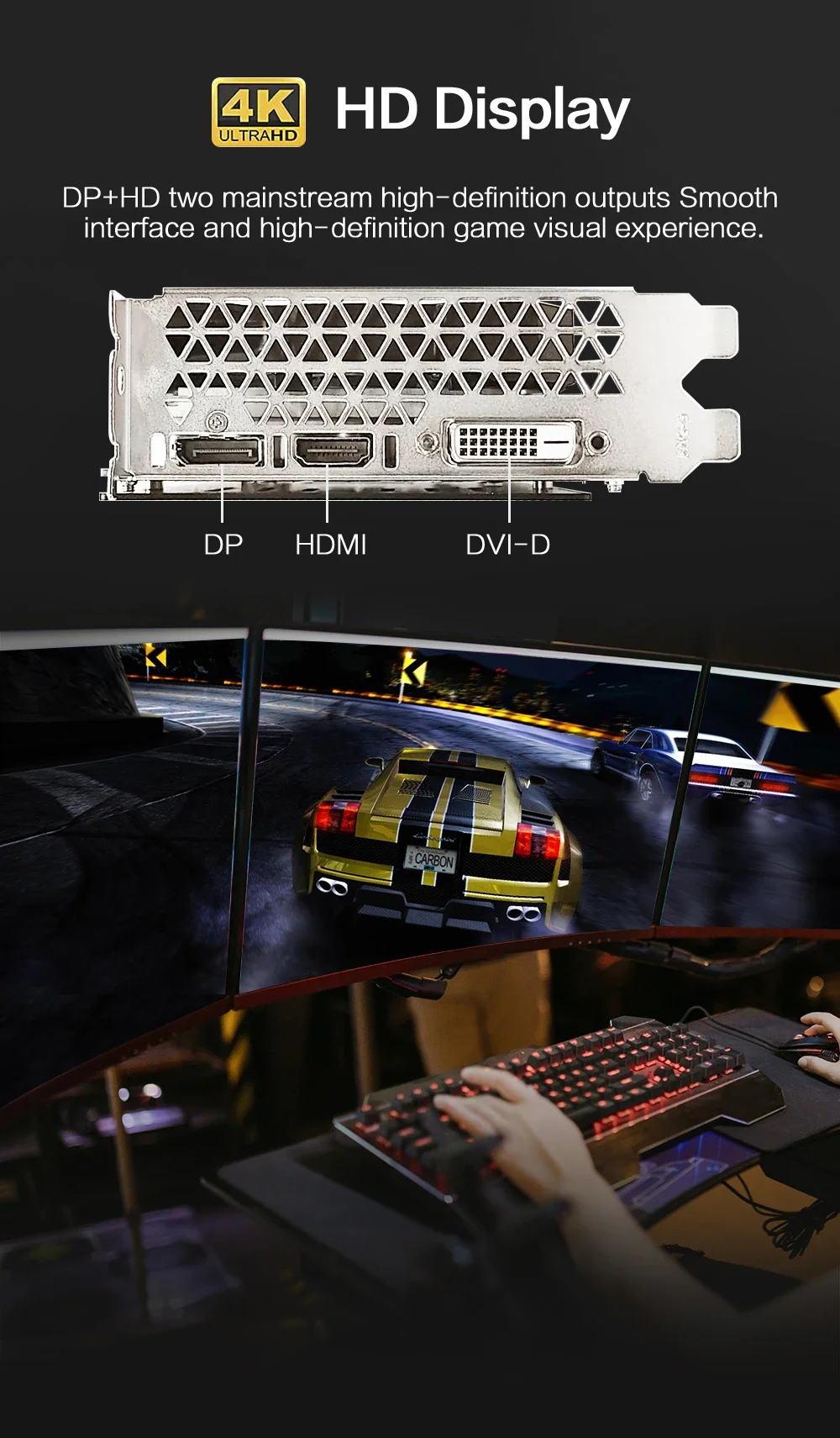 DP+HD two mainstream high-definition outputs Smoothinterface and high-definition game visual experience.