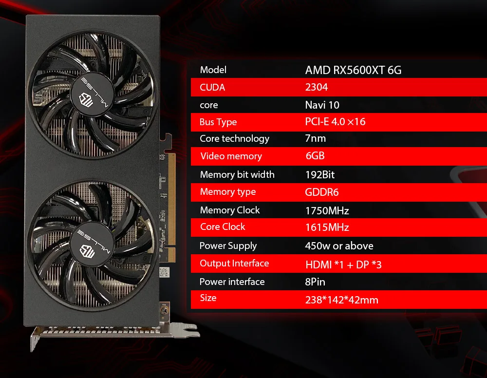 Игровая видеокарта MLLSE AMD RX 5600 XT 6 ГБ создана для работы даже с самыми требовательными играми и приложениями. Благодаря мощному графическому процессору вы сможете насладиться захватывающими игровыми процессами с высокой частотой кадров и плавным игровым процессом. Погружаетесь ли вы в виртуальный мир или редактируете видео высокого разрешения, эта видеокарта поможет вам.